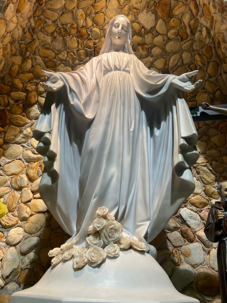 Nossa Senhora sorri para nós e diz que hoje vem nos revestir com os raios de amor que saem do Seu Coração. Seu desejo é que o nosso dia seja pleno de oração e agradecimento a Deus. Pede para renunciamos a tudo o que nos afasta de Jesus, que torna nossa vida vazia. Estende Suas mãos sobre os nossos corações, reza e intercede por nós! É o momento de entregarmos a Ela os nossos pedidos, as nossas famílias e toda a humanidade. Que possamos viver esta intimidade com Nossa Senhora que está tão próxima de nós. Muitos raios saem de Suas Mãos e vêm em direção aos nossos corações.